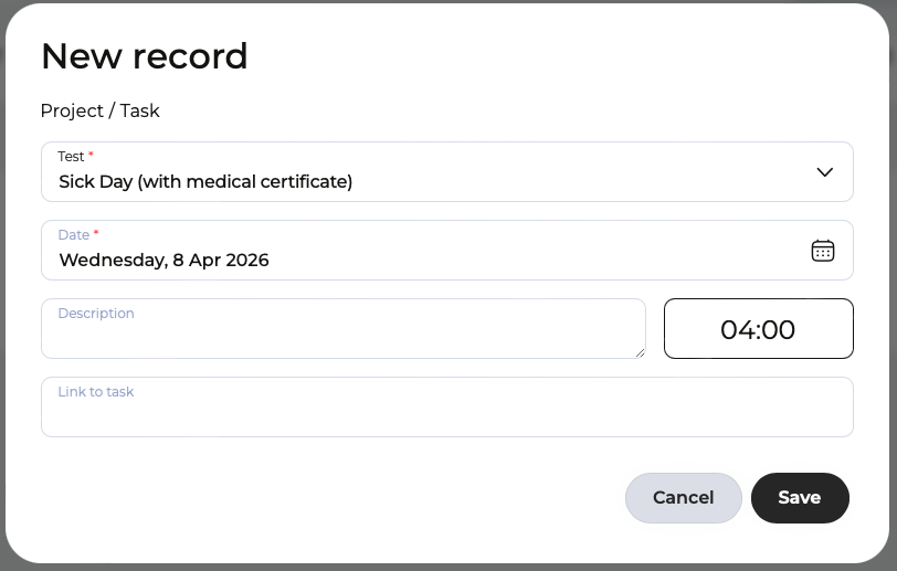 Each of these booking types has a direct impact at the end of the month — on payroll, on legal documentation requirements, and on project planning. If sick leave is booked as vacation, the vacation balance is wrong. If breaks are missing, working hours are wrong. If special leave isn’t recorded, the documentation is missing.