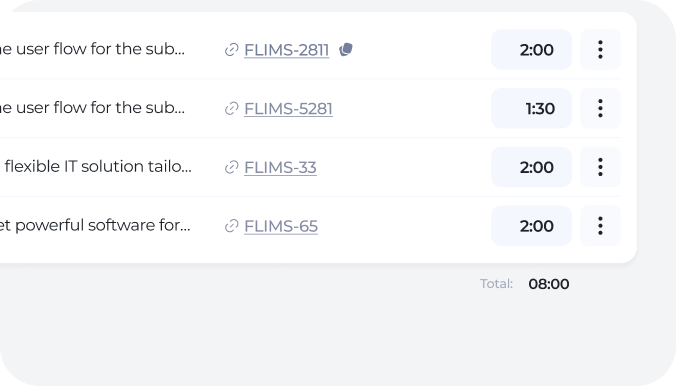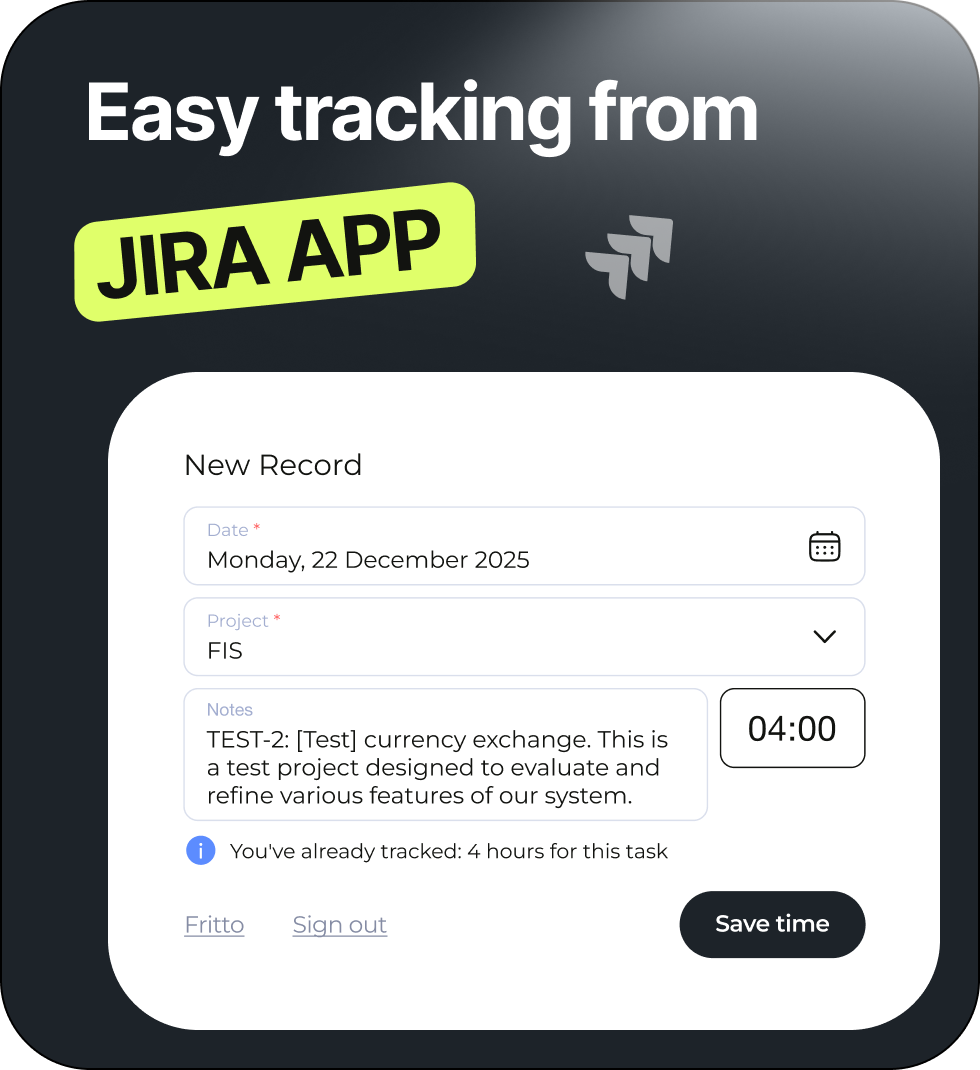 Time tracking directly in Jira — Log working hours without leaving Jira, right from the task.